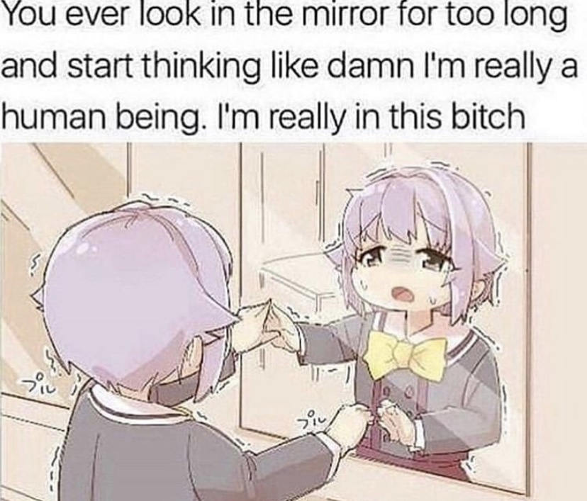 You ever stare at yourself in the mirror long enough and start thinking holy shit, i'm really real, i'm really in this bitch
