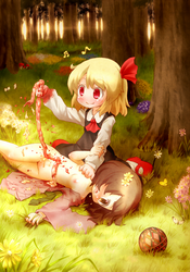 lolibooru_51976_beamed_semiquavers_blonde_hair_disembowelment_hair_ribbon_multiple_girls_musical_note_open_clothes_red_footwear_team_shanghai_alice_touhou_project.jpg