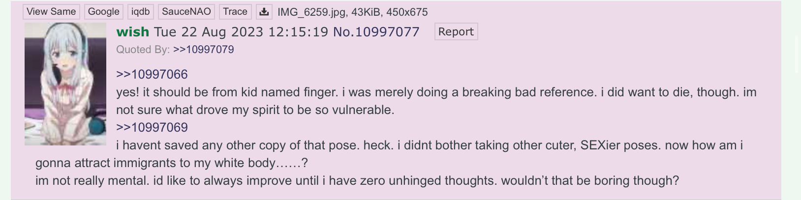 The other s4s, or maybe it's just the jannies there, but they are evidently more right wing-leaning given how they sperged out over faggotry and yet many of them, unsurprisingly, are into pedophilia and take no issue with it