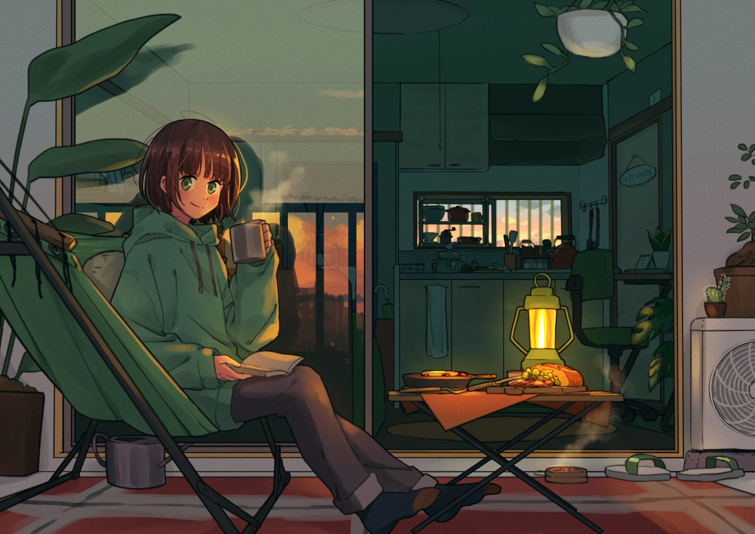 I woke up. Having a cup of tea.