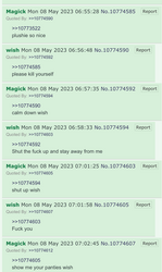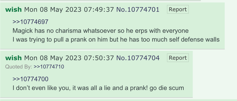 >>29787 Wish is 100% malebrained, true fembrains like Magick remain being bitchy brats even when angered. Wish goes full mattress