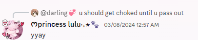 im sadomasochistic ! btw i encourage my partner to choke me using their bigbepsi until they cum even if i cant breathe at all! zero breaks. also,i told them that if i wsa too bratty they can accidentally choke me a little too hard ^-^ (its ok if they kill me