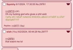 thing is, wish is completely non functional and brain dead basically. whenever he's not mumbling about rape, he's complaining about physical discomfort or posting screenshots of rape erp. he's a goner, you're talking to a dementia patient