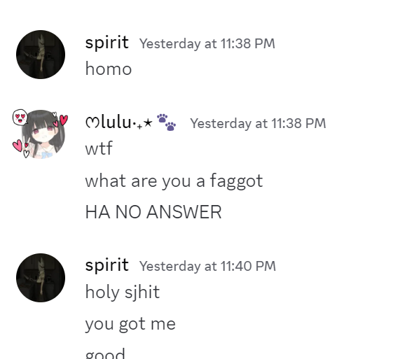 >>30424 I know that the image in particular is just people abstractly fucking around with a rhetorical concept but irrespective of it itself >basing your identity on a pejorative stereotype that's not just false, but false specifically because it's an accurate stereotype of the people you're trying to consider as baseline for the comparison of the stereotype >literal 'foul is fair' declarations because of sour grapes These are jiru levels of cope lole