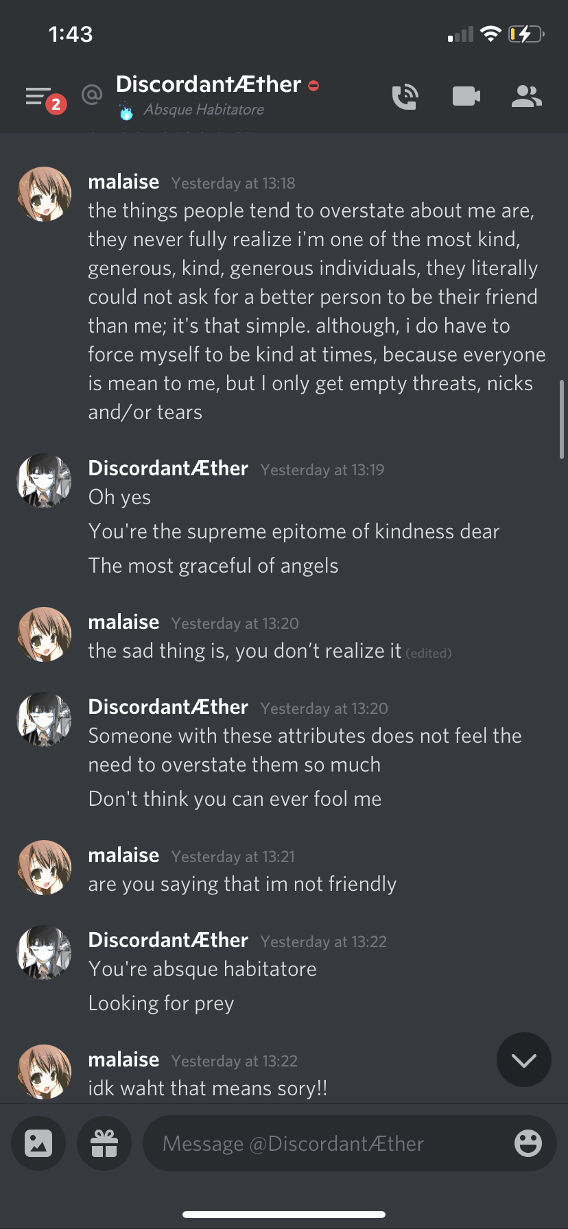 like if i look here, obviously u were saying "im not them" to mean "im not that other anon", and the question u were "just asking" was "who am i"