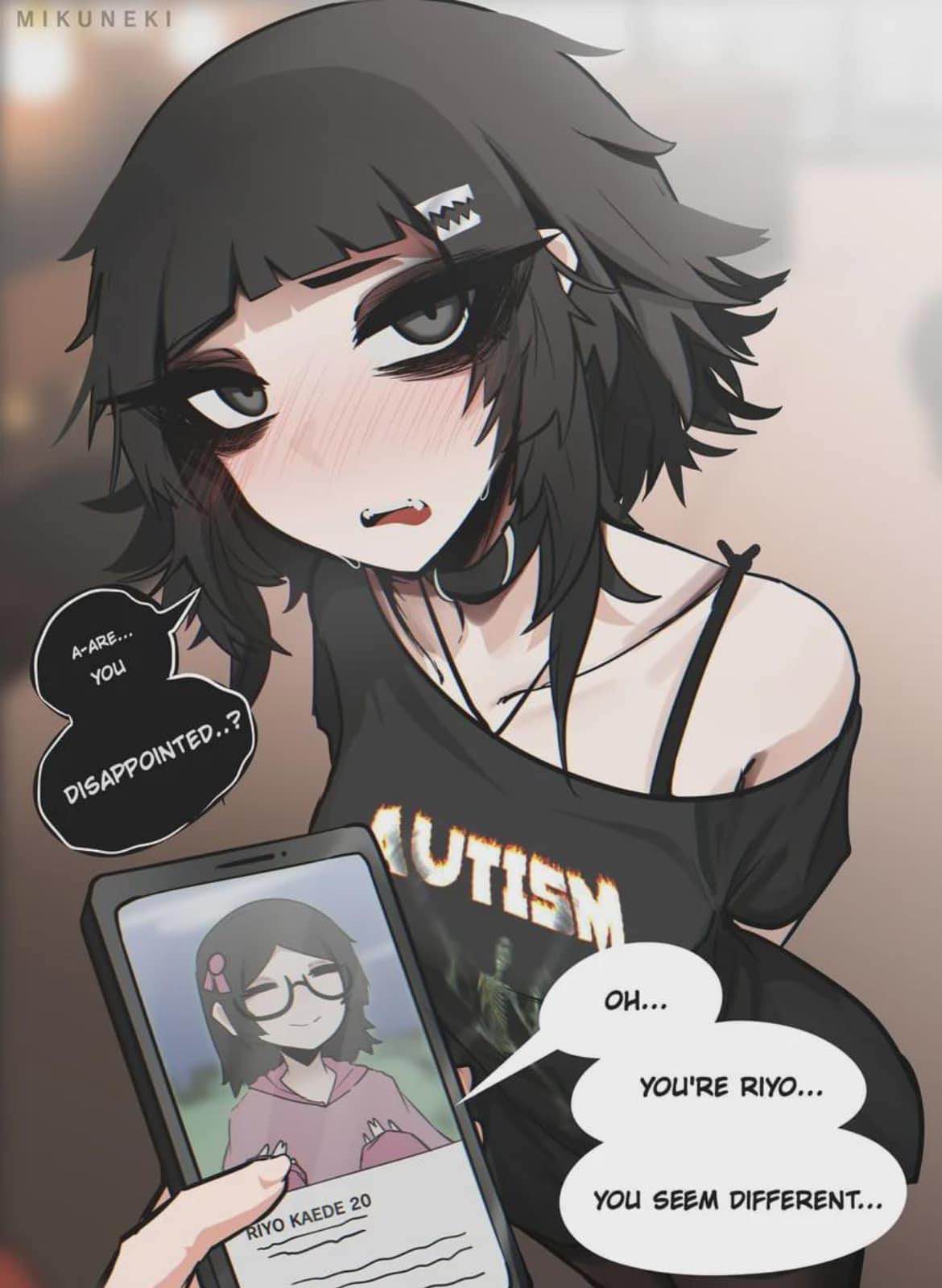 Do shutins usually dress nice and take care of their appearance and smell nice? I'm not sure this artist has ever seen a menhera girl failure before.
