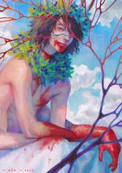 >He worked until his fingers were stained chlorophyll-green and he felt that they were his, even though the new joints were different and at their tips were wickedly-sharp claws that slipped out when he flexed his hands, and back in when he relaxed them. Just out of curiosity, he dropped the leaf and dragged one over his other wrist, watching as the skin split as evenly as though beneath a blade, red blood well out. When he pulled his claw away the tissue sealed itself back together again from the inside to the outside. Thoughtfully, he bent his head and licked the spilled blood away. At least that was the same, or tasted so, that unique viscous bitter-rich.