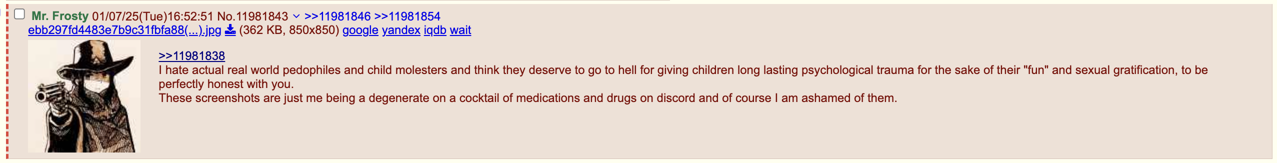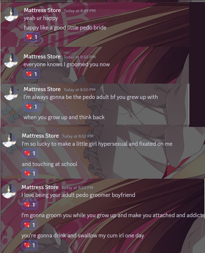 I don't wanna go into detail about this whole thing again but it wasn't some 9 year old girl or something by the way, it wasn't even a girl for starters.