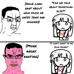then one day i got drunk and hooked up with a cis woman and it was like… oh. oh no. this feels soooooo right dude. suddenly all the seething about "incels" was just me yelling at a mirror the whole time dude. the whole superiority complex collapsed like a house of cards when i realized i was just a miserable little faggot who hated himself and now ive started to self identify as Aryan and wear Europa shirts and shit with my dick in every girl's pussy